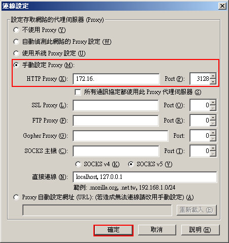2) 設定 Proxy IP & Port,按「確定」即完成設定。
