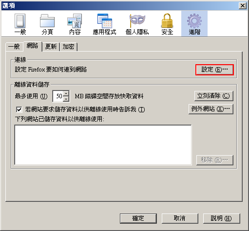針對個別連線設定,Firefox 則沒有這樣的問題。