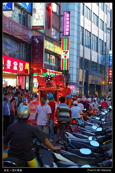 整條街?沒想到熱天終究驅散了人群,提早到淡水捷運站的我,